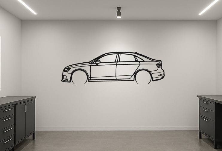 Komplekt sisaldab Audi S3 8V metallist autosiluetti ja seinakinnitust.