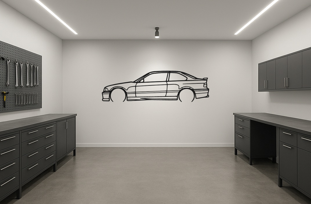 Komplekt sisaldab BMW M3 E36 metallist autosiluetti ja seinakinnitust.
