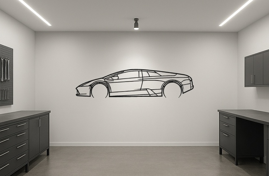 Iga detail on viimistletud täiuslikkuseni – lõikeservad on pehmendatud, et tulemus oleks sama kõrgetasemeline kui auto, mida see kujutab. Riputa see seinale elutoa fookuspunktiks, garaaži trofeeseinale või kingi see inimesele, kelle kireks on kiirus, tehnika ja täiuslik disain.