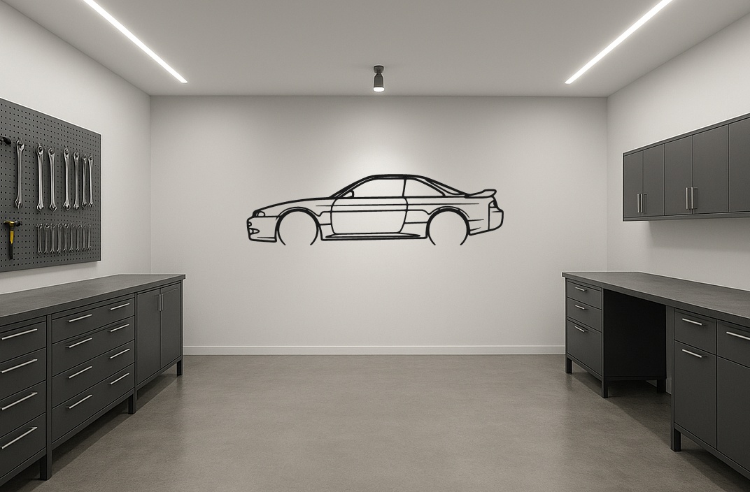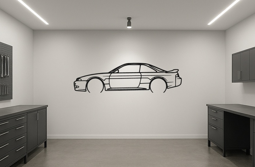 Komplekt sisaldab Nissan S14 Silvia metallist autosiluetti ja seinakinnitust.