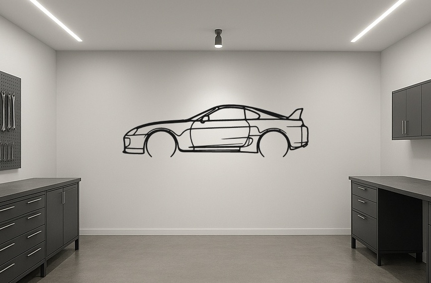 Komplekt sisaldab Toyota Mk4 Supra metallist autosiluetti ja seinakinnitust.