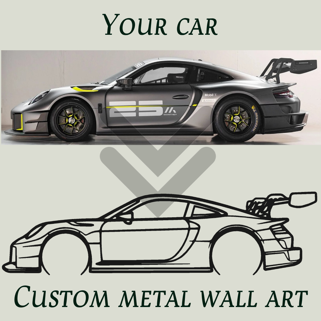 Turn your dream car into timeless wall or desk art with our Custom Metal Car Silhouettes – precision-cut, personalized, and built to last.