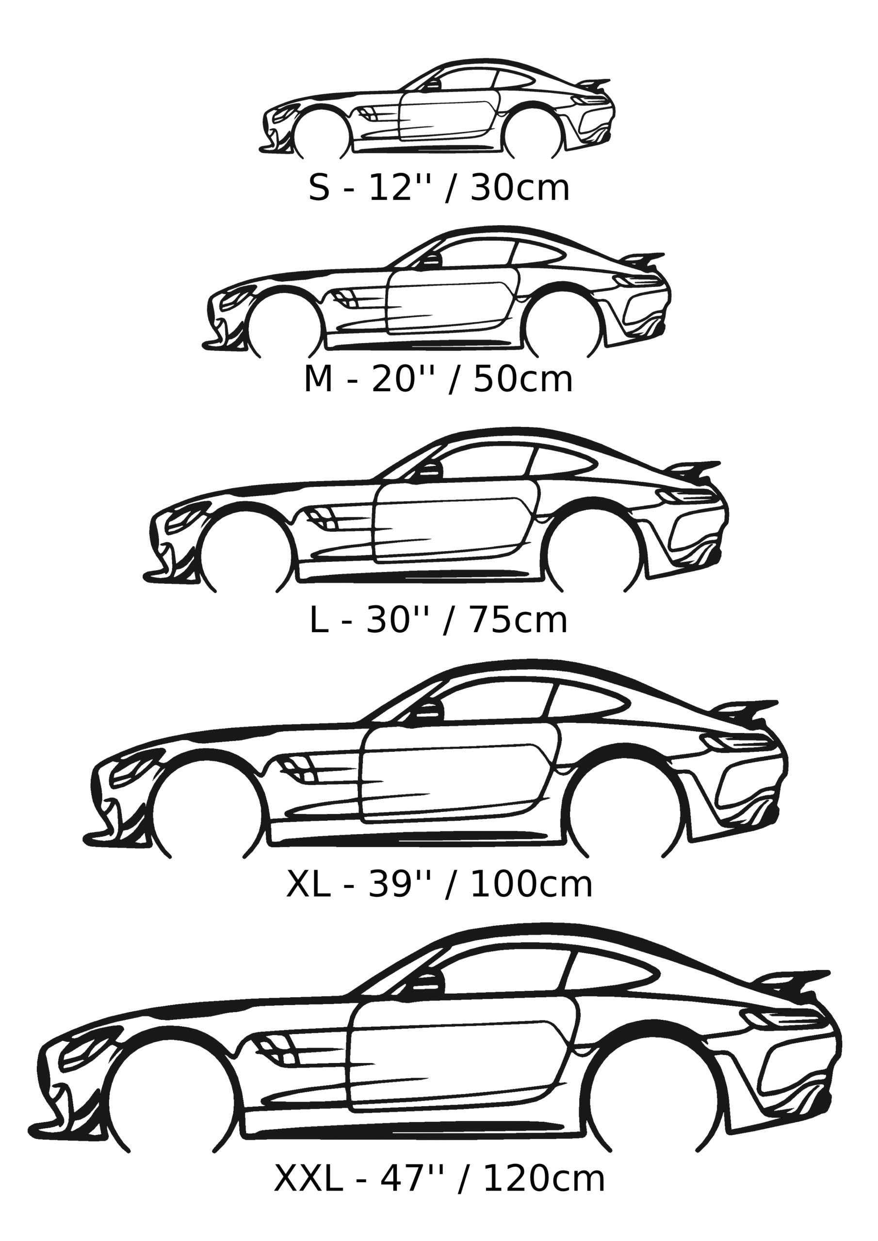 Our metal car silhouettes are not just decorations – they are a statement. Handcrafted in Estonia using only certified European 3 mm steel, cut with a high-precision laser and coated with a satin powder coat that will not fade or scratch.