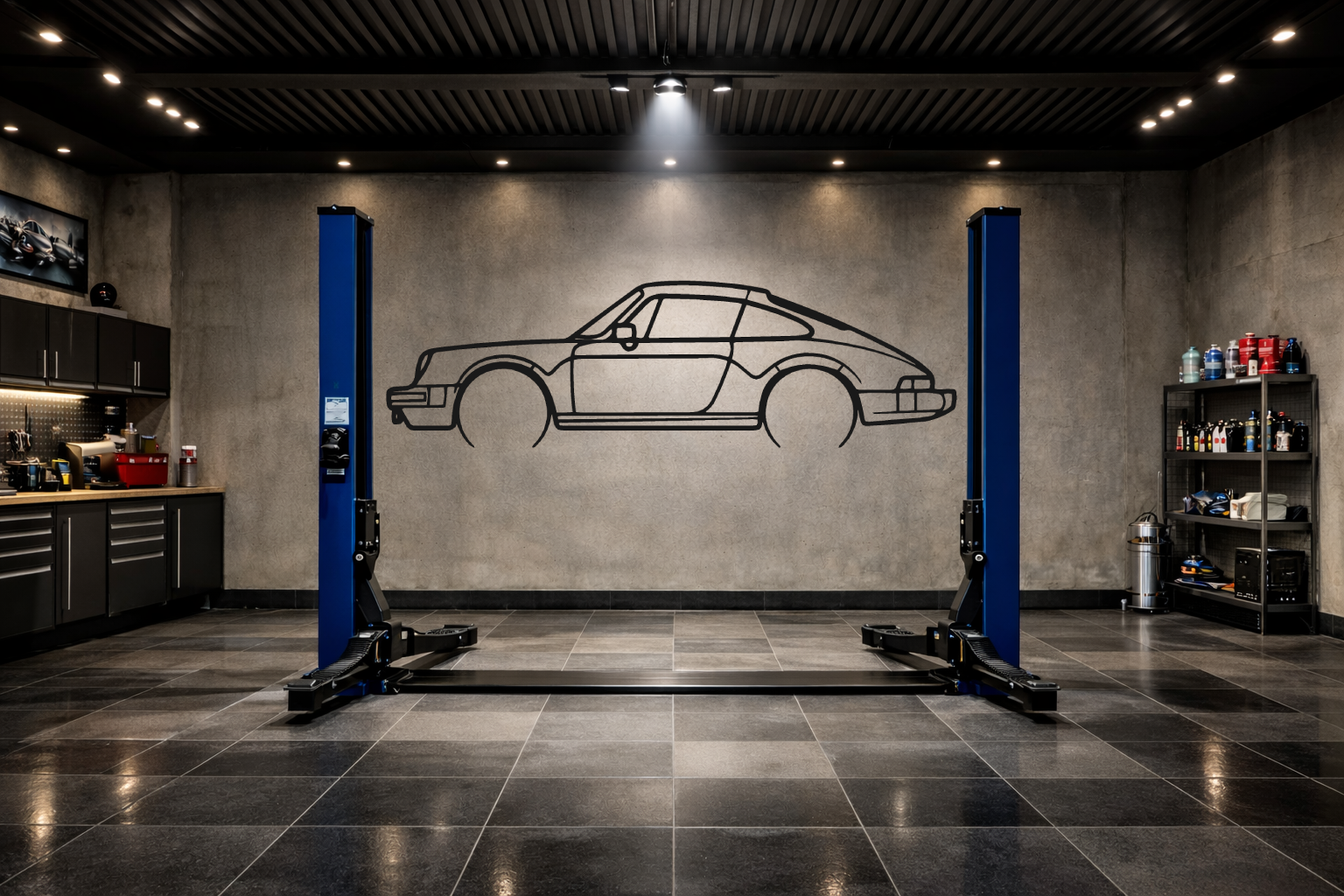 The set includes Porsche 83 911 SC Metal Car Silhouette and a wall mount.